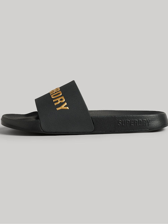 Superdry γυναικείες σαγιονάρες με φάσα WF310185A-M4R BLACK/METALLIC GOLD
