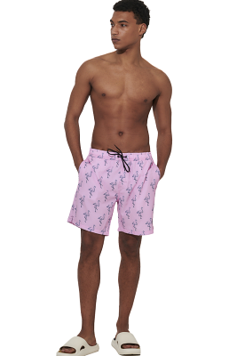 Body Action Men's All Over Printed Swim Shorts 033624-11A PINK FLAMINGO