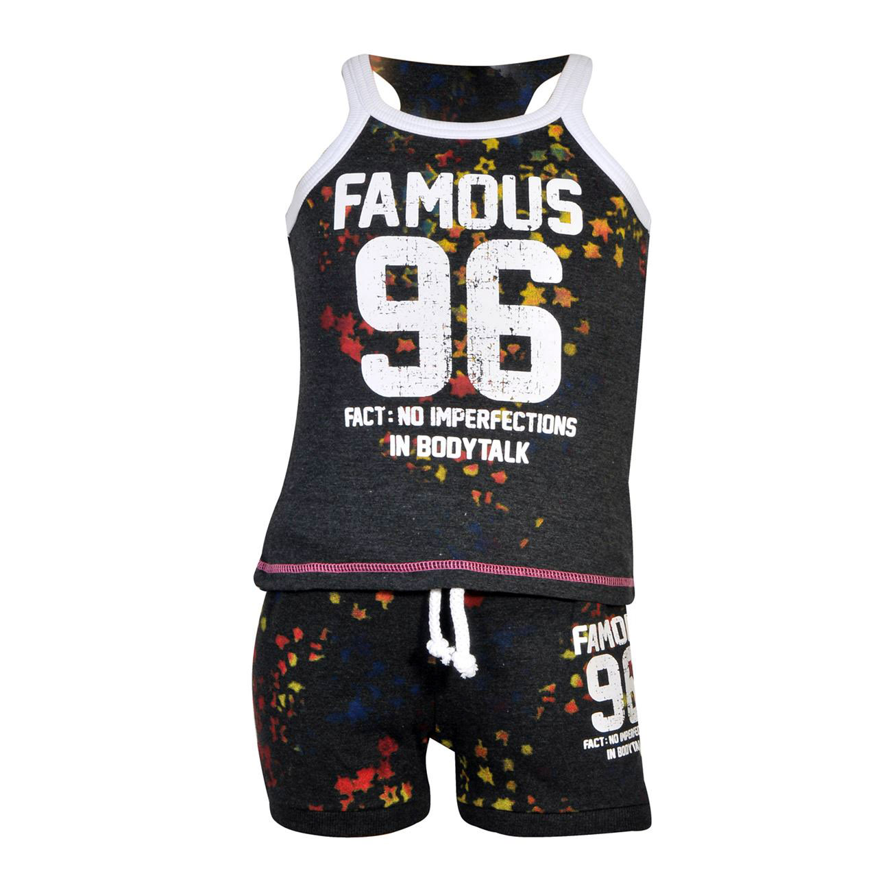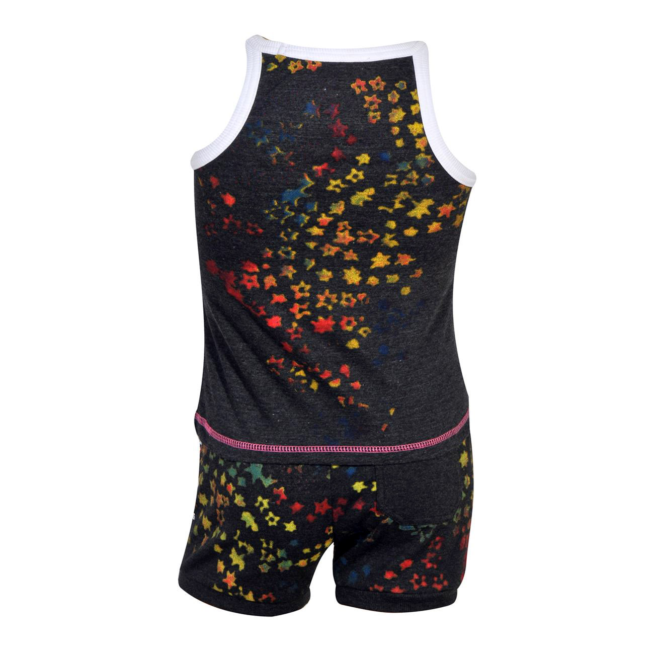 Παιδικό σετ αποτελούμενο από φανέλα με τιράντα και σόρτς. Η φανέλα έχει εντυπωσιακά τυπώματα και διακοσμητική λεπτή ρίγα στο κάτω μέρος. Το σόρτς έχει λάστιχο σε λευκό χρώμα με κορδόνι για ρύθμιση ώστε να εφαρμόζει σωστά. Διαθέτει εντυπωσιακά τυπώματα και είναι σε στενή γραμμή. To σόρτς έχει τσέπη στο πίσω μέρος και είναι ιδανικό για το καθημερινό άνετο ντύσιμο καθώς και για γυμναστική . Η σύνθεσή του είναι 50% βαμβακερό και 50% πολυεστέρας.