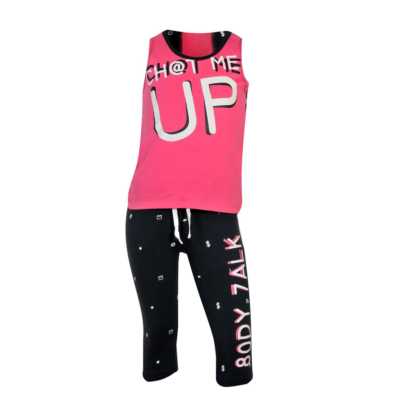 Παιδικό σετ αποτελούμενο από αμάνικη μπλούζα με φαρδιά τιράντα και κολάν 3/4. Η αμάνικη μπλούζα διαθέτει στάμπα στο μπροστά μέρος και μία μικρή στο πίσω μέρος, κάτω αριστερά. Διαθέτει ιδιαίτερο σχέδιο στην πλάτη συνδιάζοντας το ύφασμα και το χρώμα του κολάν. Το κολάν έχει λάστιχο στην μέση με κορδόνι για ρύθμιση ώστε να εφαρμόζει άψογα. Διαθέτει εντυπωσιακό τύπωμα στον αριστερό μηρό και έχει ελαστική εφαρμογή. Είναι ένα μοντέρνο σετ, ιδανικό για όλη την μέρα και για όλα τα σπορ. Η σύνθεσή του είναι 100% βαμβακερό.