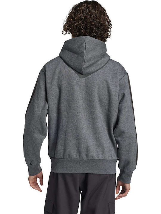 Adidas 3-Stripes Fleece Hoodie JW4308 GREY/BLACK